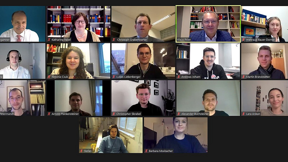Im Rahmen des Seminares „Aktuelle Judikatur des Verfassungsgerichtshofes“ konnten die Studierenden am 10.01.2022 nicht nur angeregt die jüngsten Erkenntnisse des VfGH diskutieren, sondern bekamen auch einen spannenden Einblick in die Genese derselben. Geleitet wurde die Lehrveranstaltung von Mag. Dr. Waltraud Bauer-Dorner, der Leiterin des Verfassungsdienstes Steiermark, VfGH-Präsident Univ.-Prof. Dr. Dr. Christoph Grabenwarter und Univ.-Prof. Dr. Klaus Poier. Zu Gast waren zudem Univ.-Prof. Dr. Gerhard Baumgartner und Univ.-Prof.in Dr.in Katharina Pabel, deren Impulsvorträge zur Judikatur rund um die Themenkomplexe der Untersuchungsausschüsse und der Sterbehilfe die Grundlage für eine sehr vielschichtige und höchst interessante Abschlussdiskussion boten.